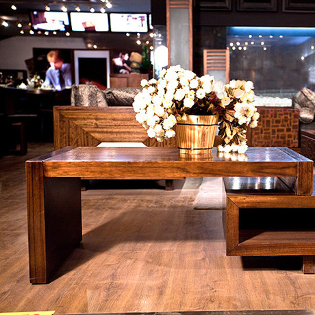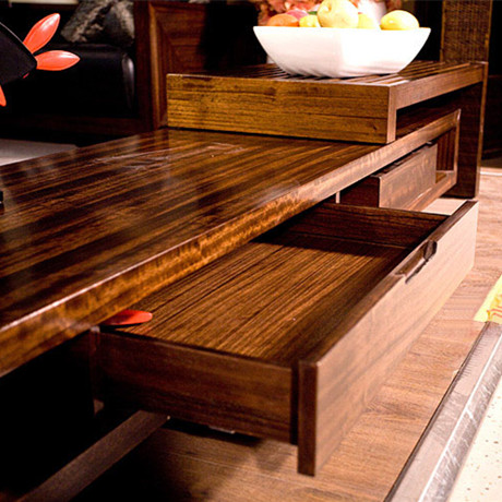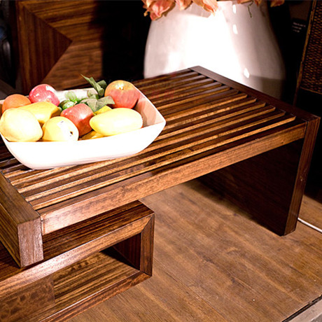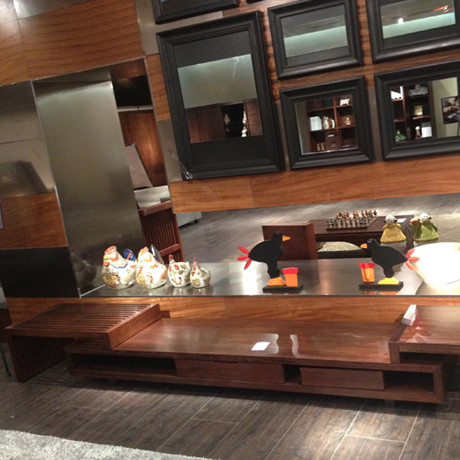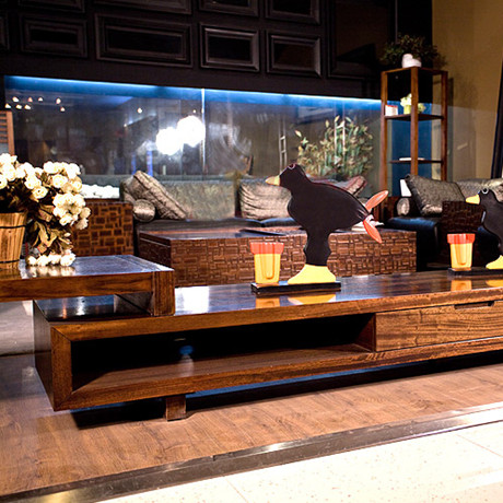 •电视柜•基材采用非洲桃木,非常稳固,再搭配进口非洲桃木贴面,尽显尊贵时尚,电视柜中间镂空的部分增加了储物空间