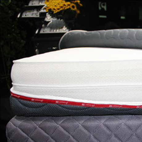 床垫选用3D材质,率先将玻纤用于产品制造,透气干爽,而且材质无色无味,安全环保。此款床垫还采用了物理抗菌科技,不但防螨防过敏、防静电,而且无辐射、无磁场干扰,持续环保。此外还具有内部微循环系统,利湿、保湿。 在结构上,创新使用了分7区设计的德国Muller三维立体“鸟巢”设计,将纯三维立体的空间结构细分,依据人体工学原理,将体型,体重,分布于床垫着 床面,每平方立米上拥有40根互不干扰的独立工作的功能丝,对身体的体贴无微不至。而且三维立体编织物的顶部和底层均有上百万个聚酯纤维,为身体提供良好 的平衡承托、稳定性和弹性,令您拥有舒适满意的睡眠