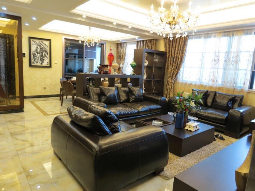1.坐感最舒适的一款皮质沙发,整款全部采用牛皮包裹。扶手是顶级跑车流线型设计,更加时尚大气。